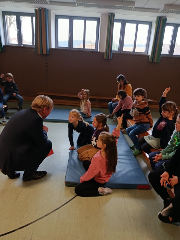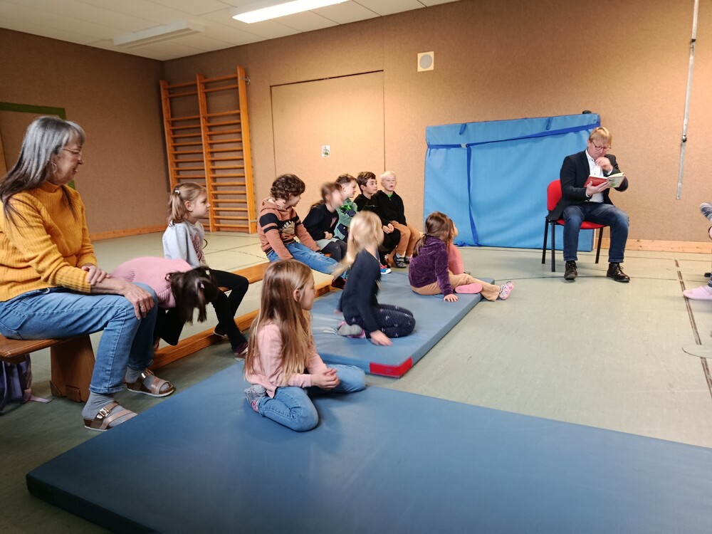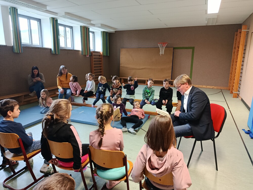 "Mein Opa und ich und ein Schwein namens Oma": Geschichten aus dem Kinderbuch von Marjolijn Hof las Bürgermeister Markus Schiesl am bundesweiten Vorlesetag für die Grundschüler und wir waren mit unseren Vorschulkindern eingeladen.