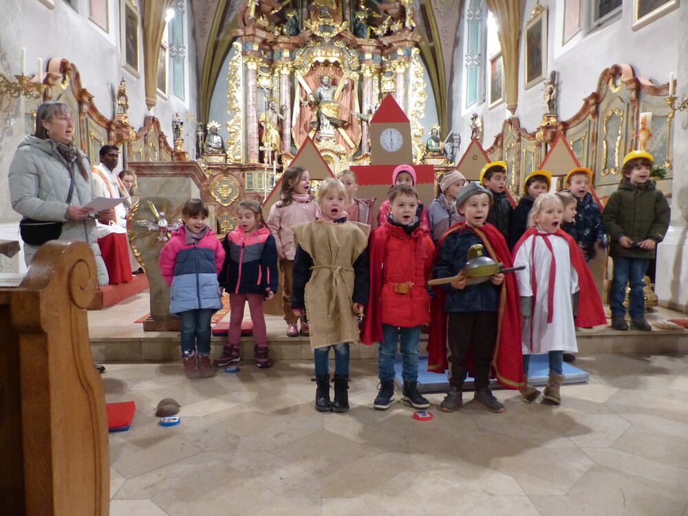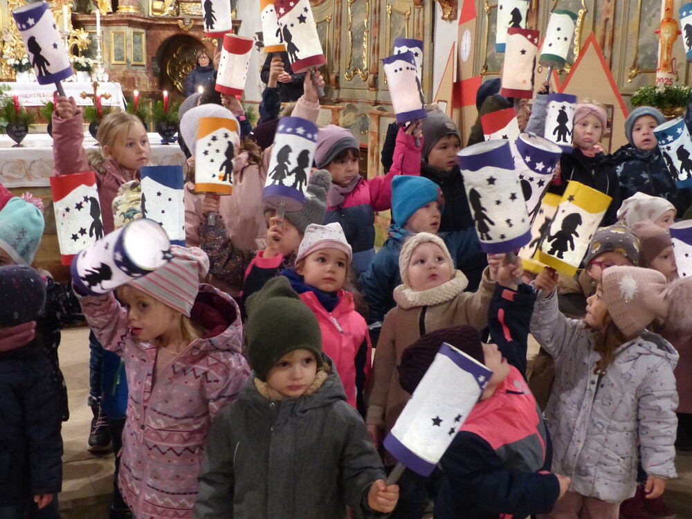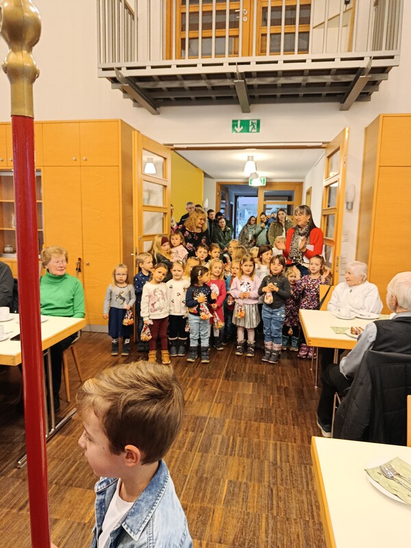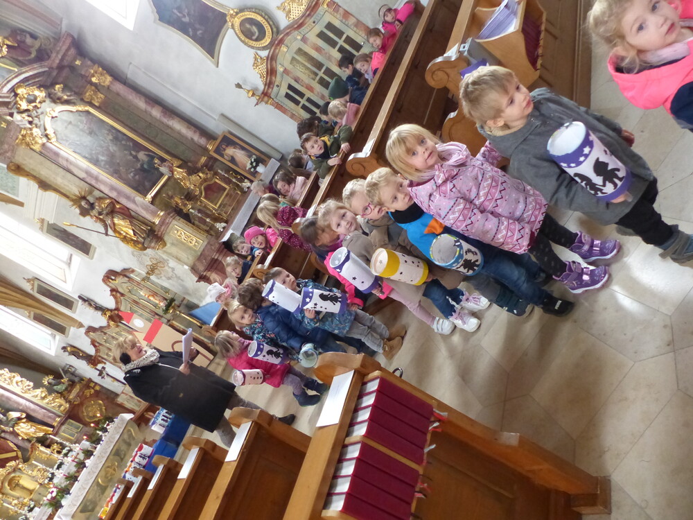 "Ein Herz für dich - ein Herz für mich" unserem Jahresthema folgend, gestalteten wir am Freitag die Andacht zu St. Martin. Die Martinslegende veranschaulichten gemeinsam die Vorschulkinder der roten und grünen Wichtel im Martinsspiel, welches in diesem Jahr auch den Traum des Heiligen, in dem Jesus zu ihm sprach, beinhaltete. Alle Mittelkinder trugen die Fürbitten zu "Martins Herz brennt voller Liebe" vor und stellten symbolisch Kerzen auf den Altar. Auch die Kleinen glänzten beim Laternentanz bevor H. H. Pfarrer Savari die Laternen segnete.