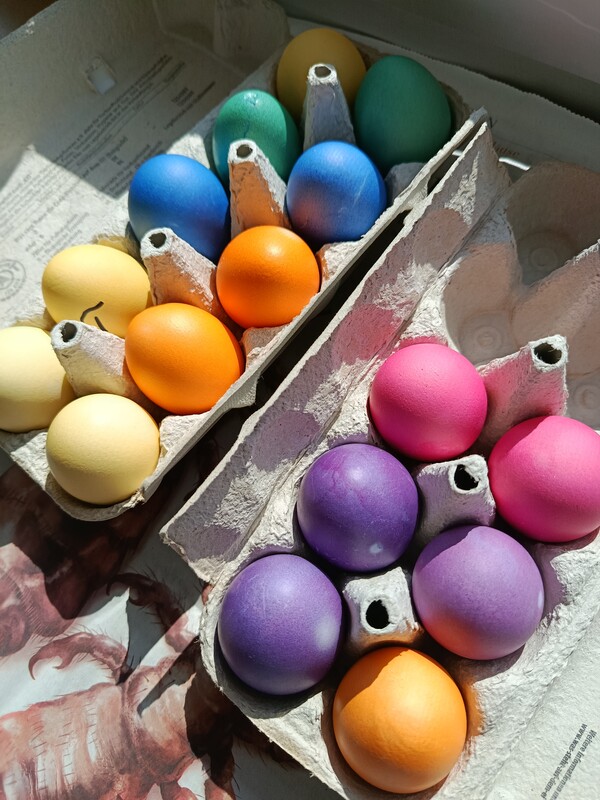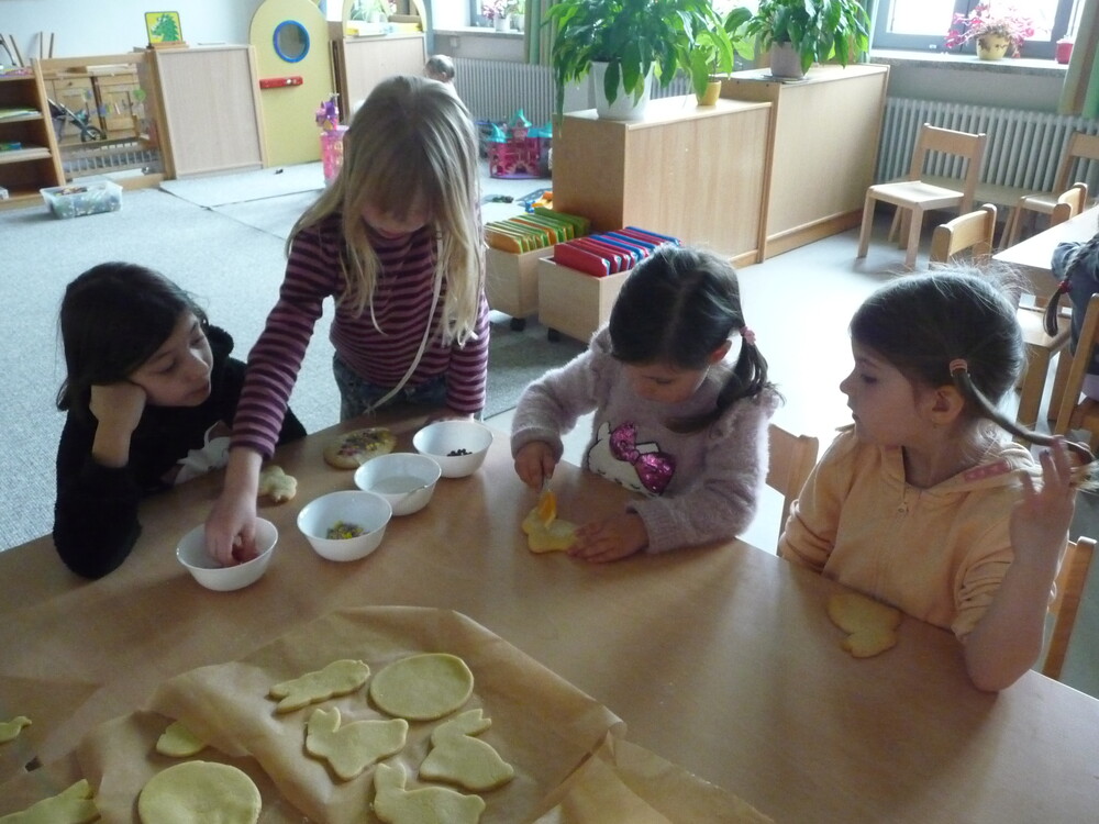 Ein Palmbüschel und eine Osterkerze wurde gestaltet. Osterplätzchen haben wir auch gebacken, dem Osterhasen beim Eierfärben geholfen. Und natürlich ein Osternest gebastelt.
