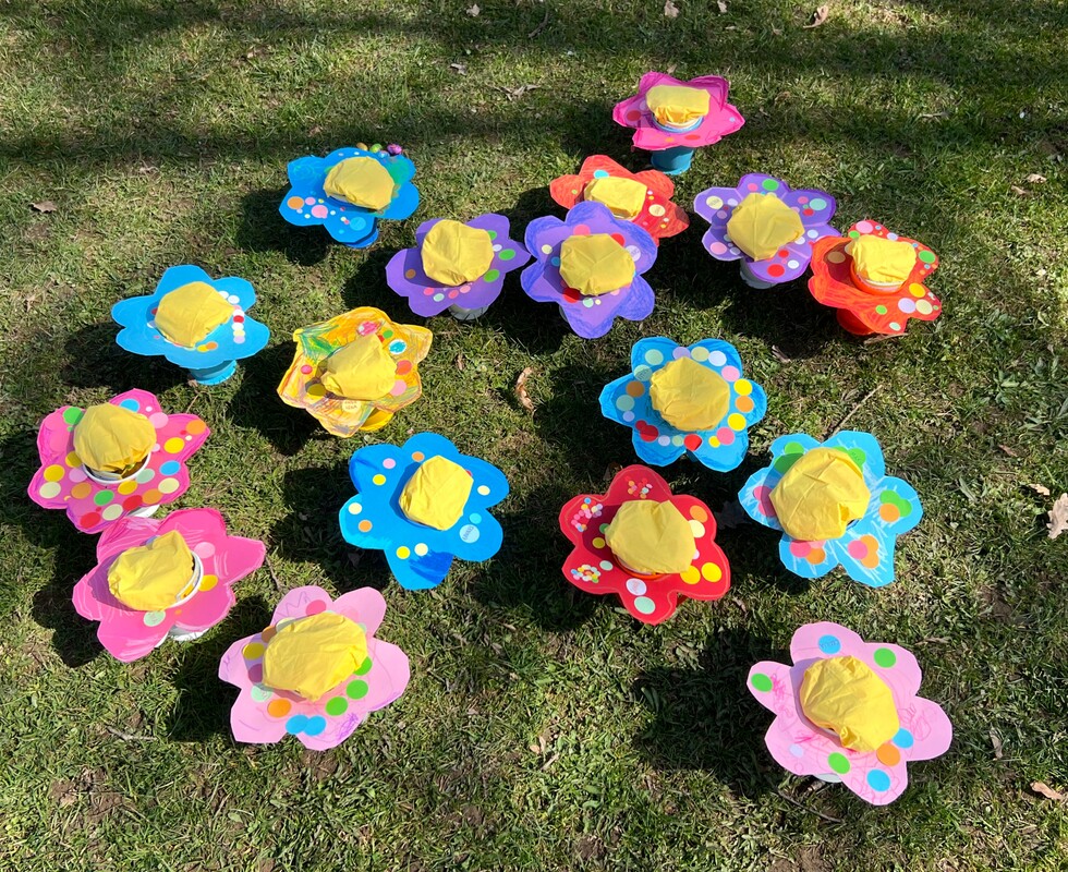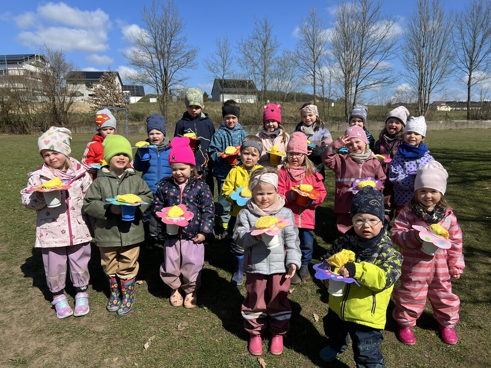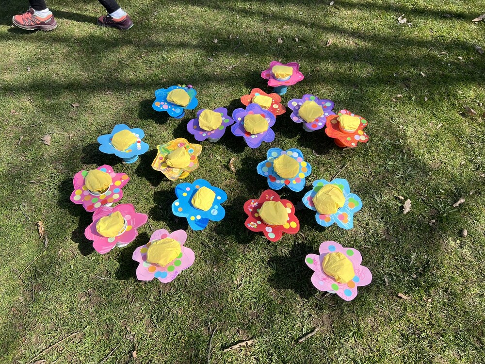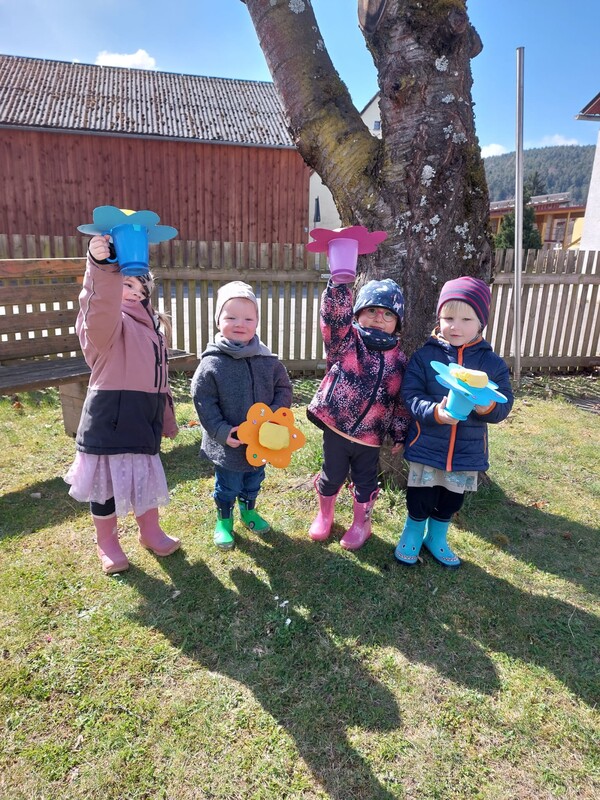 Auch für unsere kleinsten Wichtel war der Osterhase durch den Garten gehoppelt und hatte die Blumen-Nester versteckt.