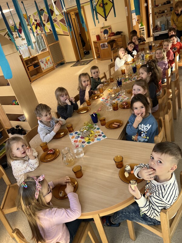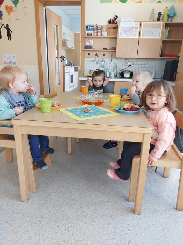 Immer am Dienstag treffen sich alle Vorschulkinder um 12.30 Uhr bei den roten Wichteln in der Schule zum gemeinsamen Mittagessen. Die Kinder genießen die Gemeinsamkeit, ihre Unterhaltung und das gemeinsame Spiel.
